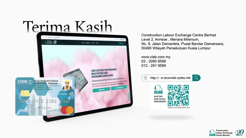In connection with that, any employer who has not registered their foreign worker's Construction Personnel Card (Green Card) is advised to register their foreign worker under supervision as soon as possible to avoid a maximum fine of RM5,000 per worker under Act 520 section 33(4) ).